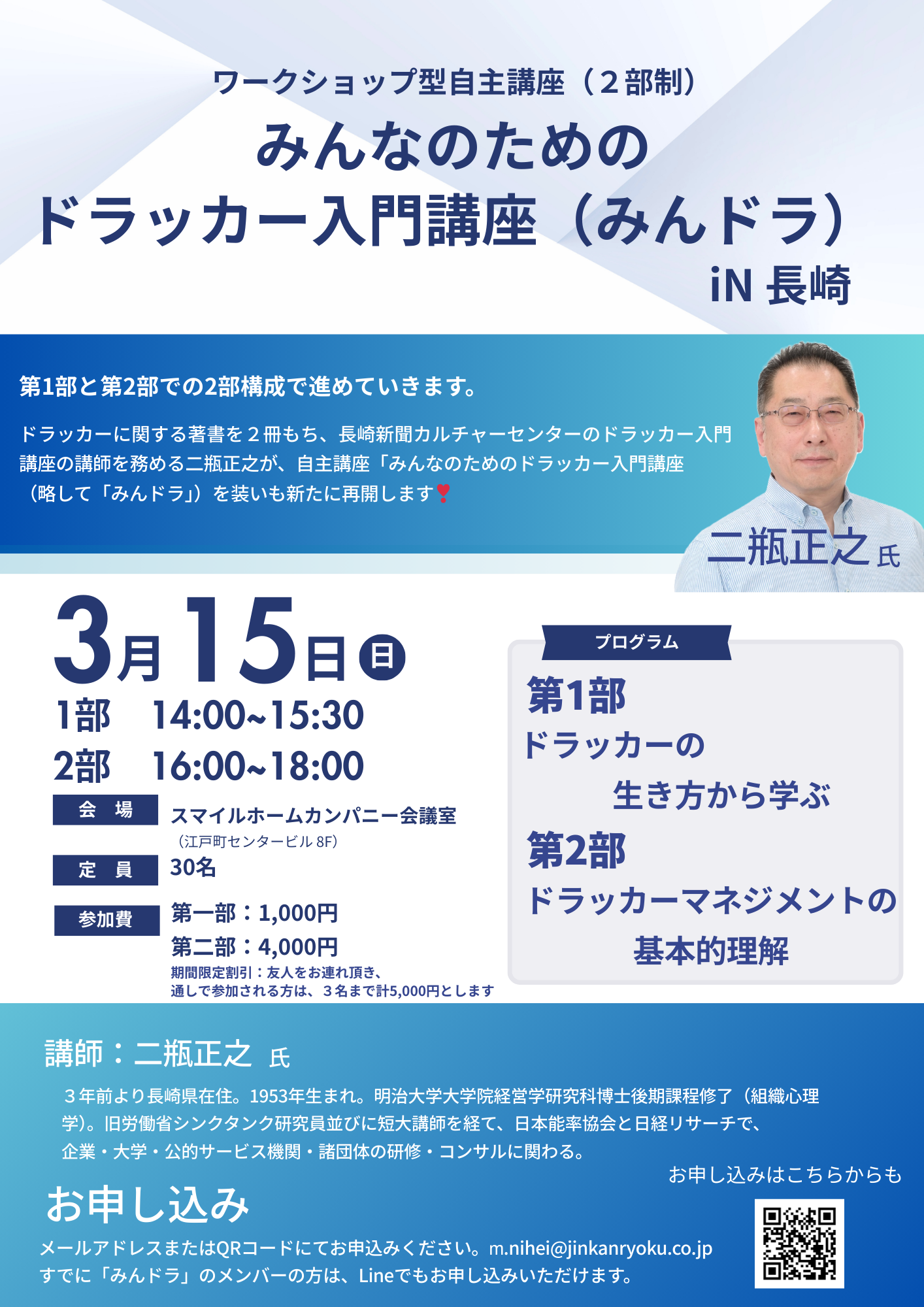 みんなのためのドラッカー入門講座(みんドラ)in長崎 3月15日(日)