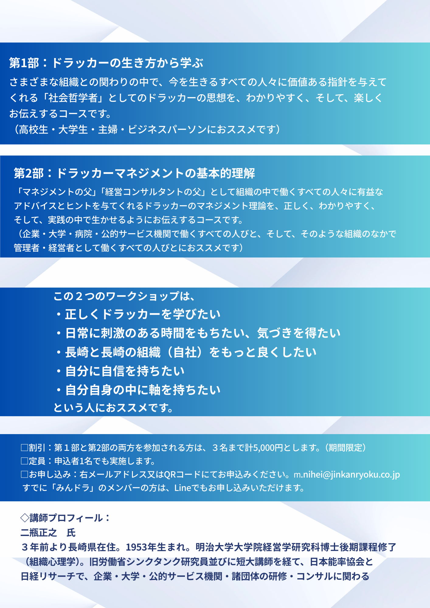 二瓶正之氏が 「長崎をドラッカーの聖地にしたい」という想いで 開催している自主講座です。
