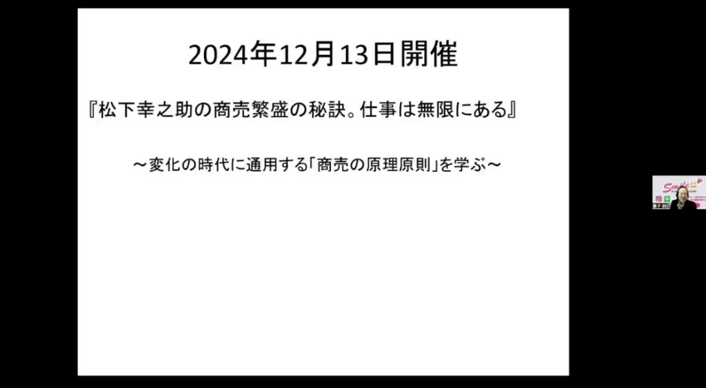 天地自然の理にかなった松下経営哲学は時代を越えた普遍性があり経営の原理原則になりえるものです。混迷の時代に灯をともす、リーダー必見の講義。
