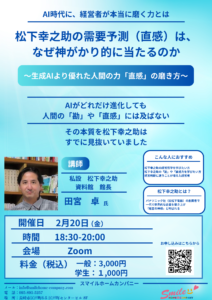 2026年2月20日(金) AI時代に、経営者が本当に磨く力とは 松下幸之助の需要予測(直感)は、なぜ神がかり的に当たるのか ~生成AIより優れた人間の力「直感」の磨き方~ 新着!!