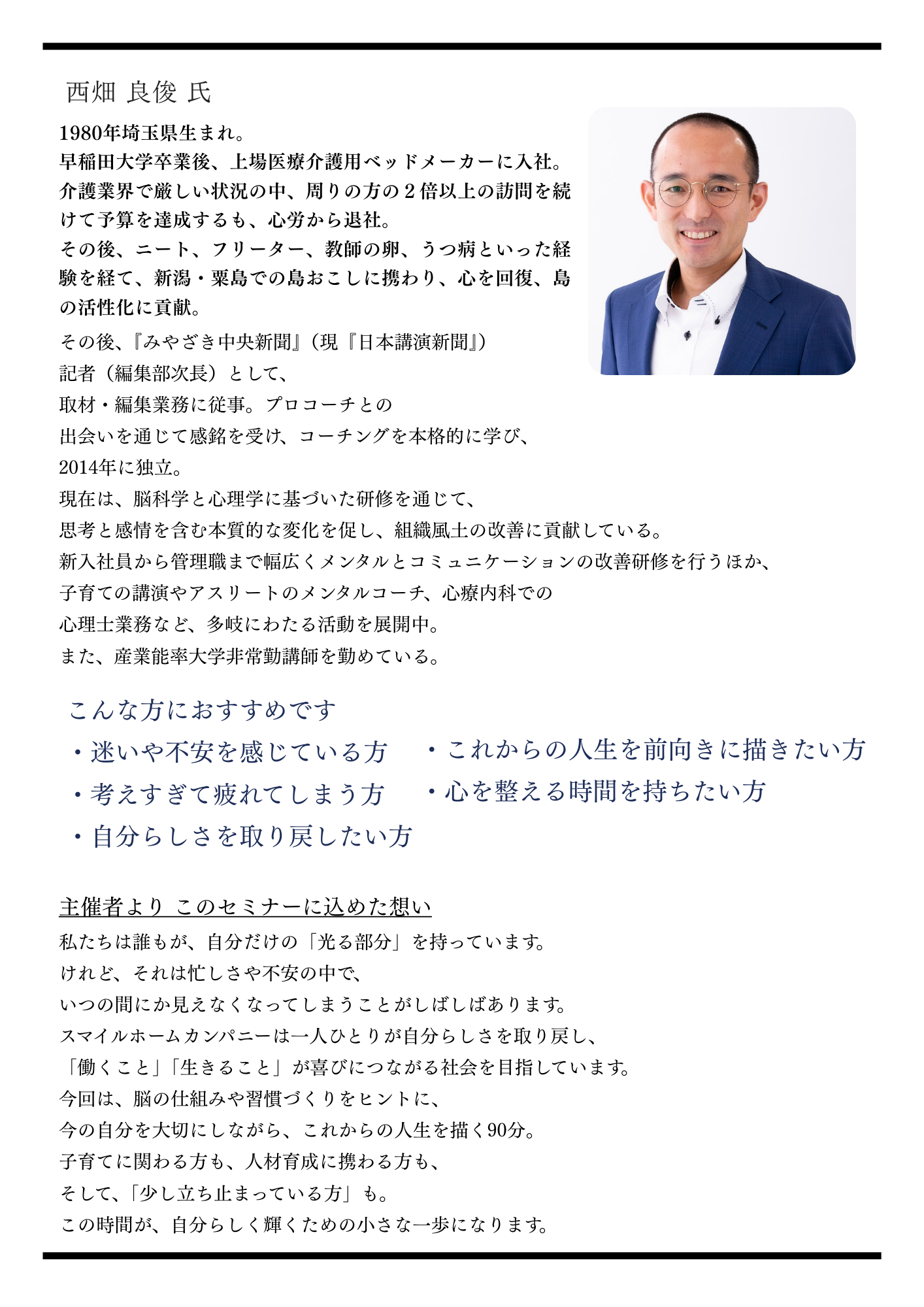 ・今の働き方や生き方に迷いがある方