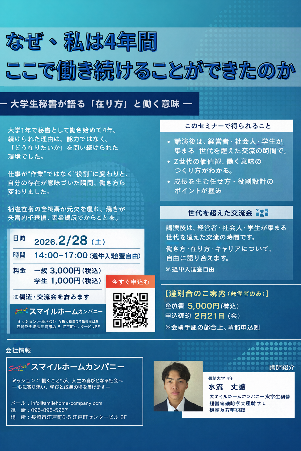 2月28日(土)14:00〜17:00 なぜ、私は4年間ここで働き続けることができたのか ― 若手が辞めない組織の“在り方”とは ―